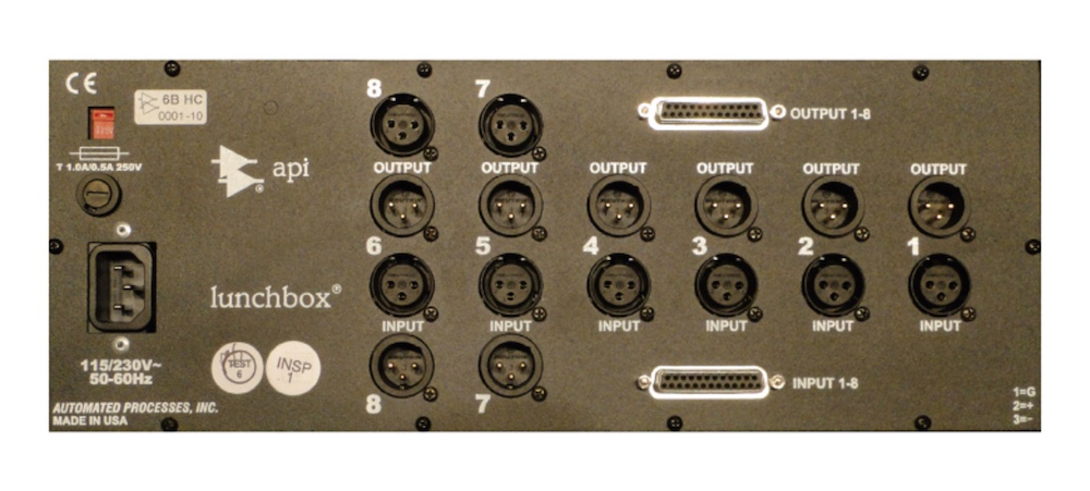 500シリーズはコネクターが共通規格のため、この可搬型ケースに自由に組み合わせをアレンジして装着させることができます。たとえば 550Aと550B、さらには560…といったように。また、ランチボックスには電源回路が組み込まれているため、外付けのパワーサプライが必要ありません。ランチボックスは+48ボルトのファンタム電源も内蔵していますので、たとえばAPI512Cとはコネクタの15ピンで電圧供給されます。