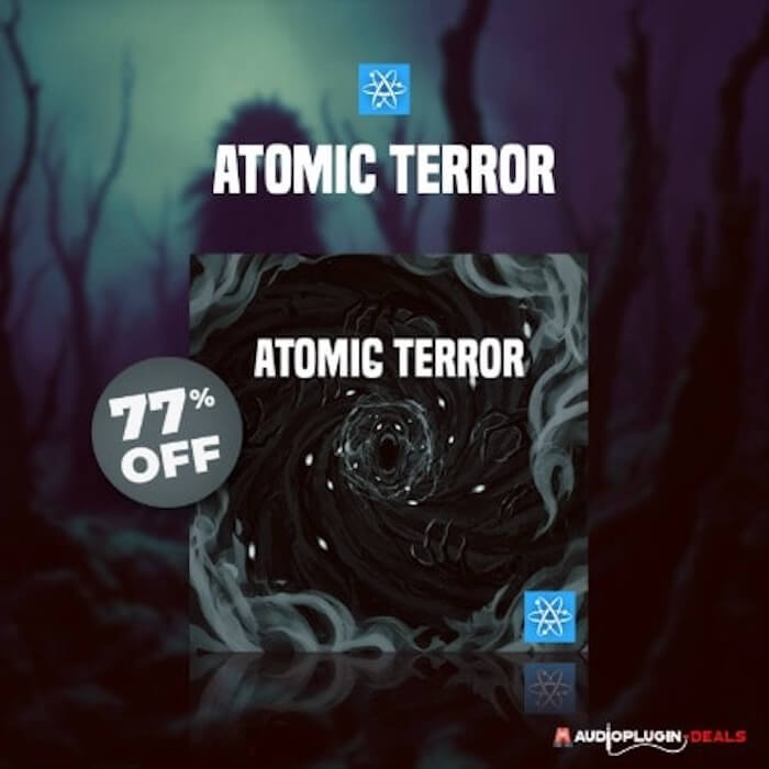 幽霊のささやきや身も凍るようなアンビエントパッドで恐怖を瞬時に表現できる、Atomic Synths「Atomic Terror」が77%OFFとなっています。