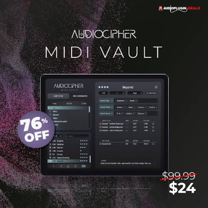 DAW用究極のオーディオ& MIDIファイル管理プラグイン、AudioCipher「MIDI Vault」が76%OFFとなっています。