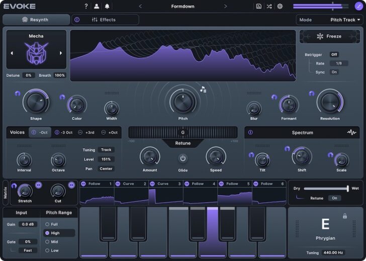 Evokeは、従来のピッチ補正やボコーダーの枠を超えた、革新的な「ボーカル再合成」技術を採用。オリジナルの声の持つ豊かな表現力を保ちながら、独創的なリードラインから重厚なハーモニーまで、瞬時に全く新しいサウンドへと再構築します。