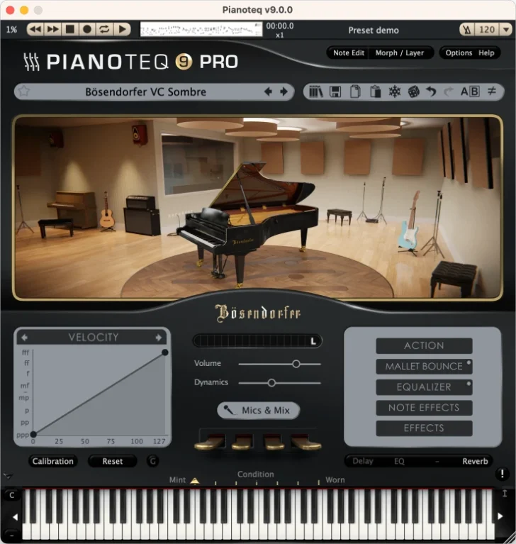 Modartt Pianoteq 9では、サウンドボードの振動モデルを改良した新しいオーディオエンジンを採用し、ステレオ感と空間的な奥行きをさらに高めています。