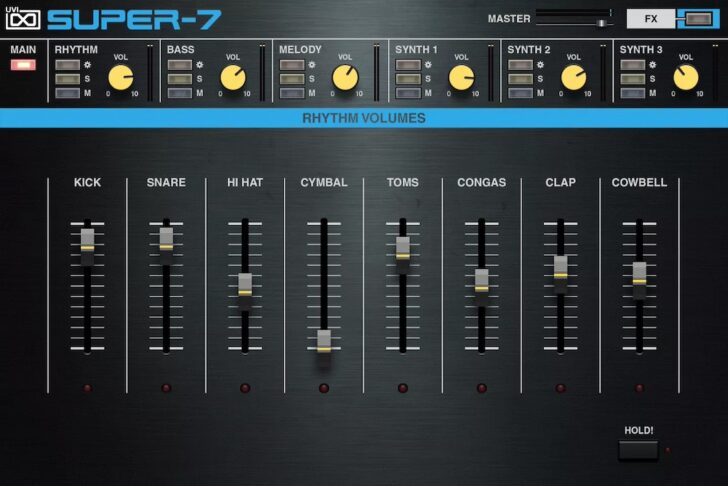 Super-7は、有名なJuno-106のアナログ構造とTR-707のPCMサウンドを合体させた、80年代の8ボイスラックマウントシンセサイザー:MKS-7に触発されたインストゥルメントで、そのサウンドの質感と魅力をありのまま提供します。