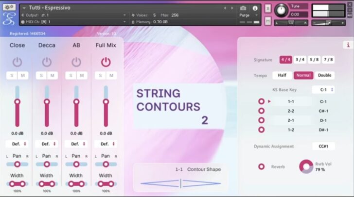 『String Contours 2』は、ノートを変えても抑揚やビブラートの流れが途切れず続く、革新的なストリング音源です。