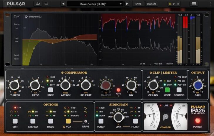 IPA 25は、オリジナルの正確なRMS検出、比率依存のニー特性、プログラム依存のリリースの特性を再現しつつ、複数のハーモニック回路、サイドチェーンシェイピング、統合ピークコントロールで機能を拡張しています。