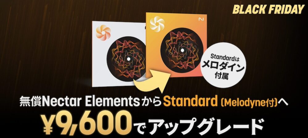 無償配布されたNectar Elementsから、Standard (Melodyne付)へのアップグレードは、9,600円です。