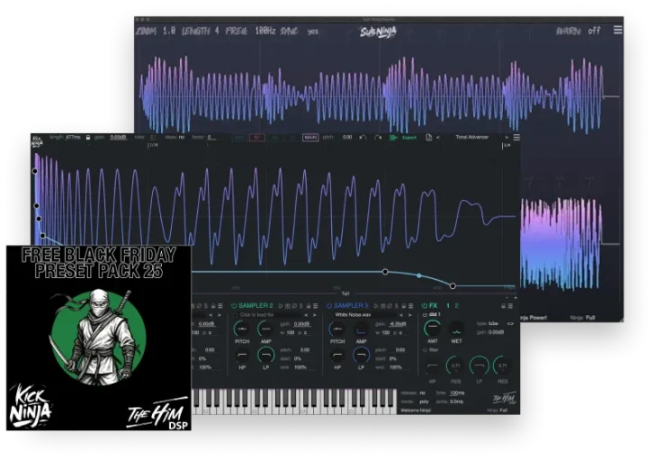 AI搭載キック音源とミックスを完璧に仕上げるためのビジュアルツールバンドル、The Him DSP「Kick Ninja & Sub Ninja Bundle + FREE Kick Ninja Black Friday Preset Pack」が42%OFFとなっています。