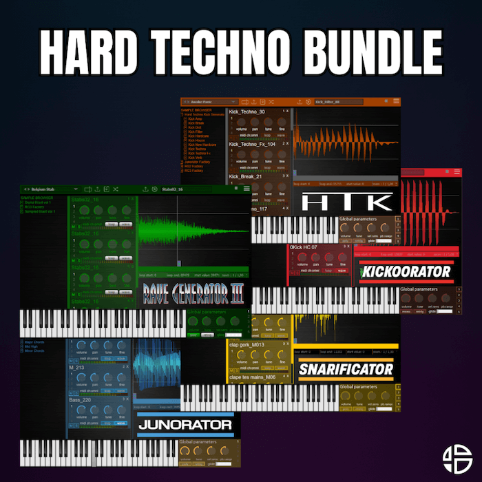 Hard Techno Bundleは、迫力満点の攻撃的なエレクトロニック・ミュージック制作への近道です。Rave Generator 3インストゥルメントに加え、キック、スネア、ベースライン、クラシックなレイブスタブ用の6つの強力な拡張パックを収録しています。