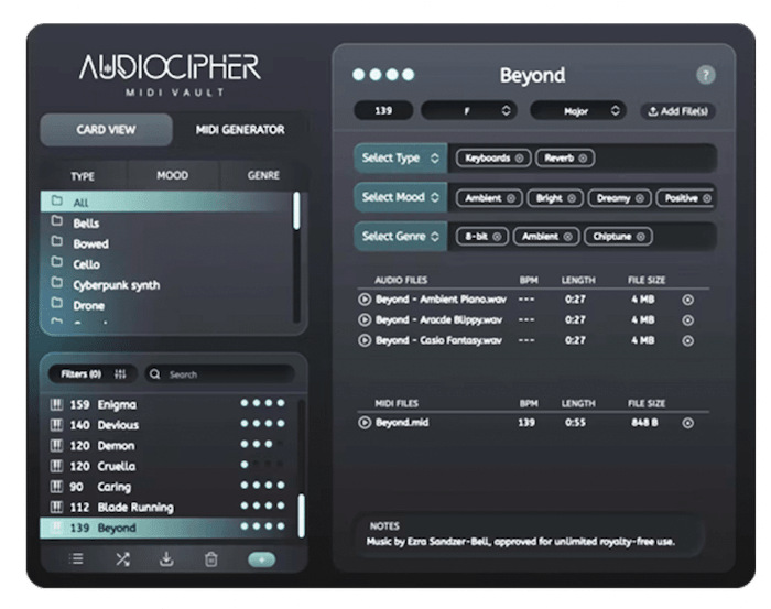 AudioCipher MIDI Vault であなただけの整理された音楽の聖域を作り、インスピレーションを完成した曲へと変換しましょう!