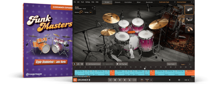 Clyde Stubblefield氏とJohn “Jab’o” Starks氏の2つのドラムセットを現代的な高音質サウンドで収録し、2つのプリセットに分けられた本作。ファンクに欠かせないリムショットをスネアと各タムで収録し、各シンバルではベル奏法を収録。シンプルなドラムセットながら、多彩な演奏をサポートします。