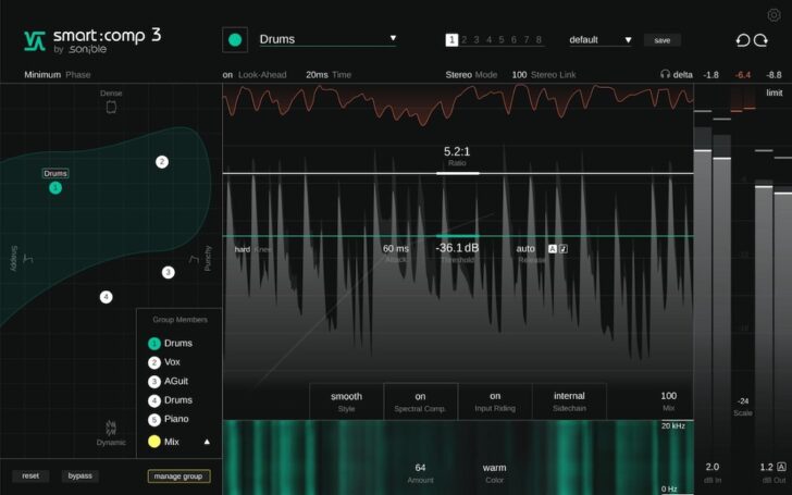 smart:comp 3はグループ処理機能も拡張。複数のインスタンスをリンクして一括制御し、複数トラックにわたる一貫した圧縮を実現します。