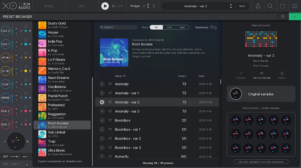 Root Access XO拡張パックで、ミッチ・マーダーのレトロフューチャーなビートを、丹念にデザインされたひとつひとつの催眠的なサンプルを通じて直接体感してください。