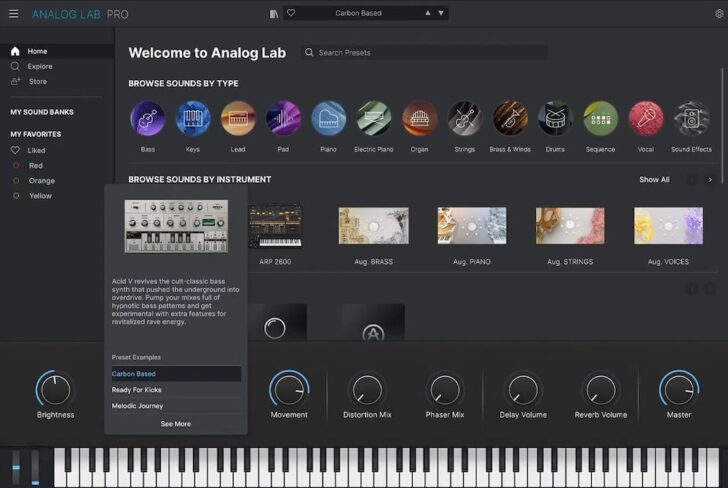 クリエイト、プロデュース、パフォーマンス。Analog Lab Vは、時代を超越した数十種類のインストゥルメントを網羅した何千ものワールドクラスのプリセット、瞬時にアクセスできるコントロール、そして完璧な統合を一つの場所にまとめたプラグインです。