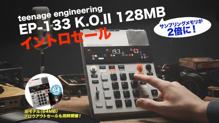 大人気オールインワン・ビートマシン EP-133 K.O.IIのサンプリングメモリを2倍に拡張した128MBモデル、teenage engineering「EP-133 K.O.II 128MB」リリースです。