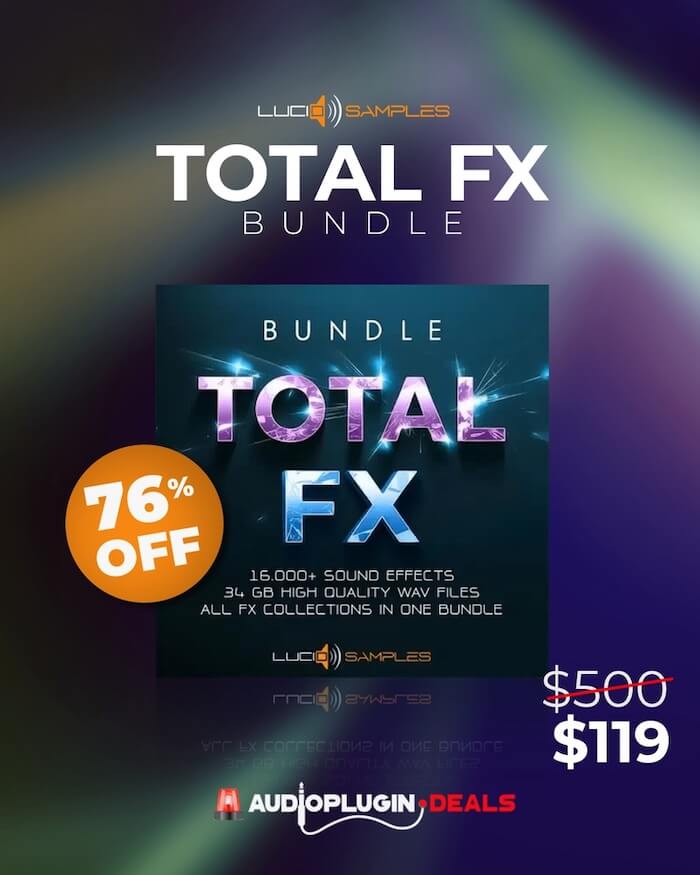 16,000種類以上のFXサウンドを収録した驚異のサウンドエフェクト・トータルバンドルコレクション、Lucid Samples「Sound Effects Total Bundle」が76%OFFとなっています。