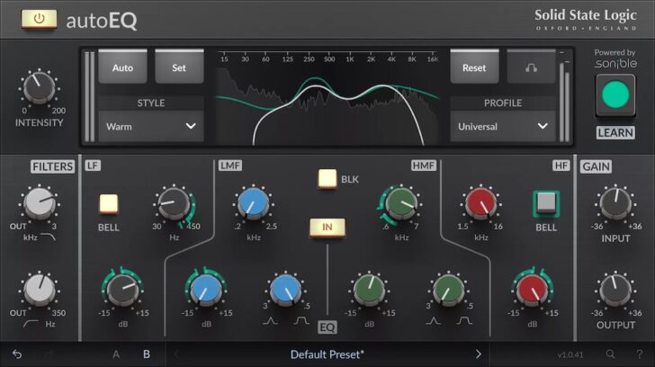 SSL 4K E のレガシーが活躍。autoEQ は、受賞歴のある SSL 4K E チャンネルストリップと同じ処理に基づいて構築されており、ピーター・ガブリエル、フィル・コリンズ、ケイト・ブッシュ、U2、メタリカなど、数多くのレコードの形成に貢献したサウンドのシグネチャーを実現しています。sonible のおかげで、インテリジェントでオーディオを認識するアシスト機能を備えた、クラシックな SL 4000 シリーズのプレゼンス、明瞭さ、音楽性を期待してください。