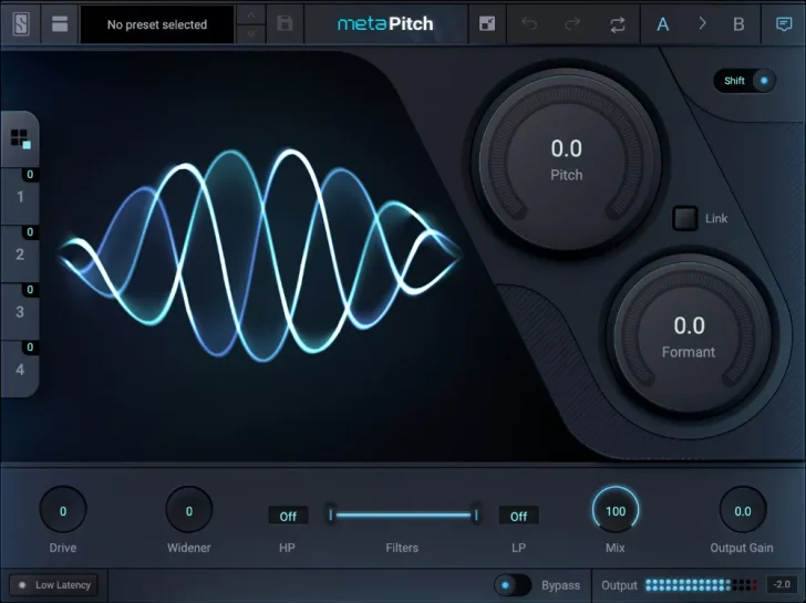 MetaPitchに内蔵されたドライブとワイデナーコントロールにより、処理音に色彩と立体感を素早く簡単に加えられます。