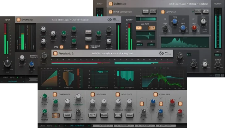 SSL Guitarstripはエレクトリックギター、アコースティックギター、ベースギターのための新しいプロセッサーです。4つのギター処理モジュールを提供するGuitarstripは、プリミックスとミキシングの両方の段階で完璧なギタートーンを作り上げるための便利なツールを満載しています。