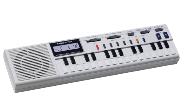 電卓、ミュージックシーケンサー機能に加えて、オリジナルの音が作れるADSR機能も備えたモノフォニックシンセサイザーです。1980年代、日本ではテクノポップムーブメントが巻き起こったものの、一般クリエイターにとっては機材がまだまだ高価な時代。そんな中でVL-1は、安価ながらもテクノ特有の電子音が出せることから、若きクリエイターの間で熱狂的な人気を誇りました。
