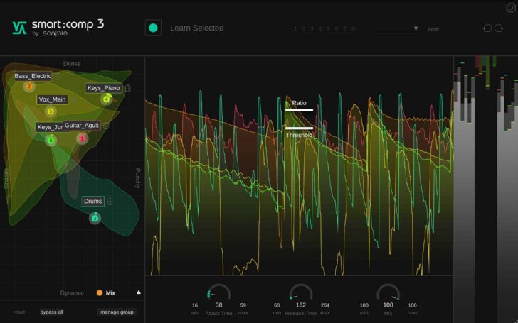 smart:comp 3はグループ処理機能も拡張。複数のインスタンスをリンクして一括制御し、複数トラックにわたる一貫した圧縮を実現します。