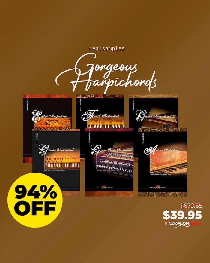1628年から1995年にかけて製作された6種類の歴史的チェンバロをバンドルした、Realsamples「Gorgeous Harpsichords Bundle」が94%OFFとなっています。