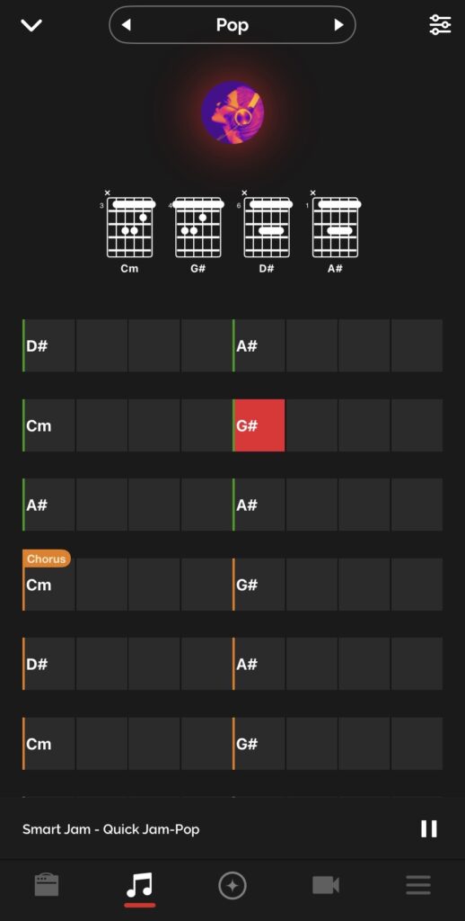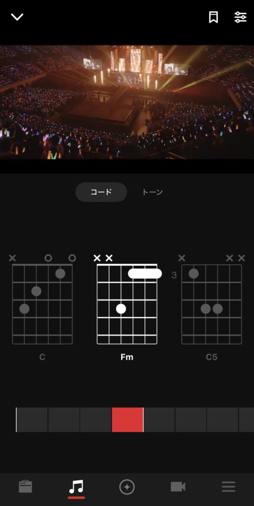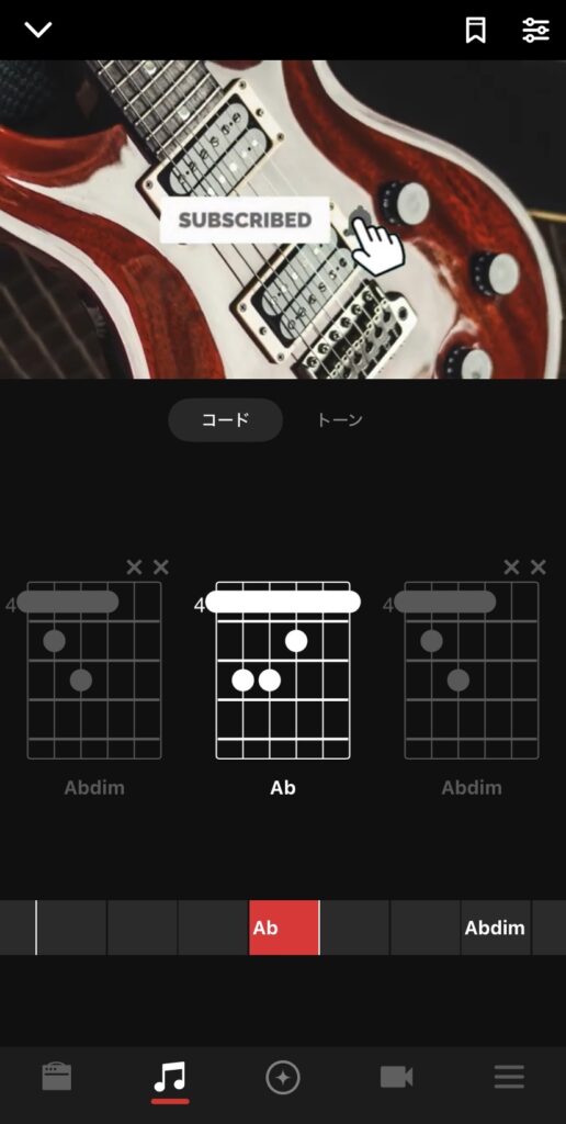 - Auto Chords機能 →YouTubeで流している好きな曲のコード進行を、AIが自動で解析して画面に表示してくれます。